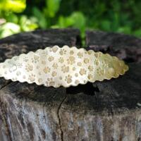 My pieces have evolved into wearable art inspired by nature. I love the organic shapes and textures of the natural world, and I strive to capture those elements in my work. I use a variety of techniques to achieve my desired effect, including hammering, soldering, and polishing. I am always experimenting with new designs and materials, and I am excited to see where my work will take me in the future.